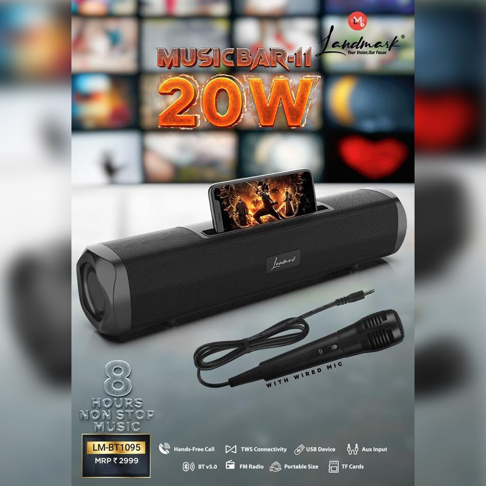 • 20W Music Bar with wired mic and TWS connectivity.
