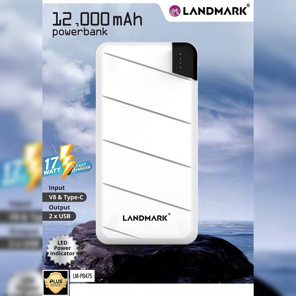• Compact 12,000mAh powerbank with dual USB output and fast charging.